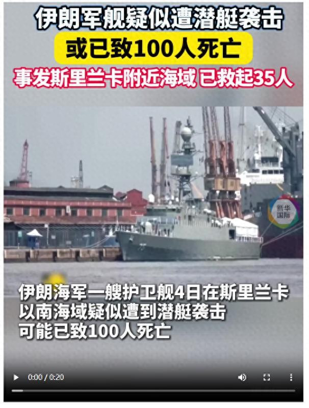 事情发生在在斯里兰卡南部加勒港以南约40海里的国际公海上,伊朗海军“德纳”号护卫舰在参加完印度主办的“米兰-2026”多国海上联合演习后,返航途中突然遭到鱼雷袭击,10分钟内迅速沉没。
